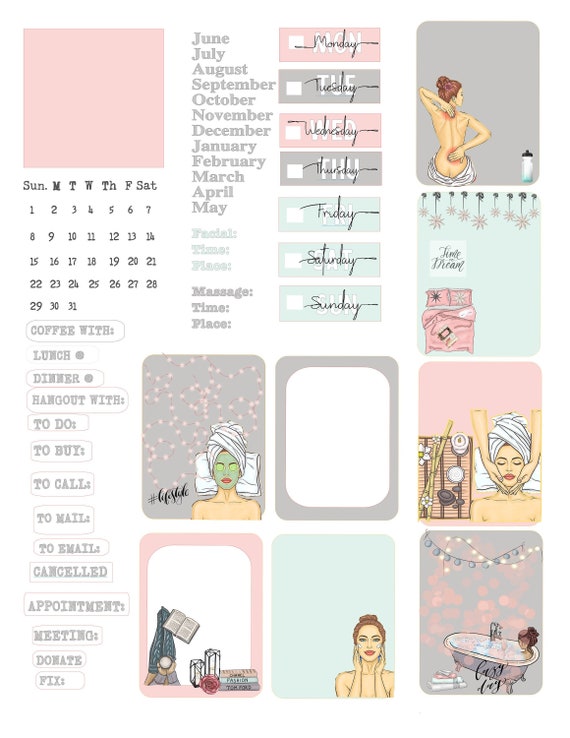 Weekly Planner Sticker Set Spa Themed Immediate Download Etsy